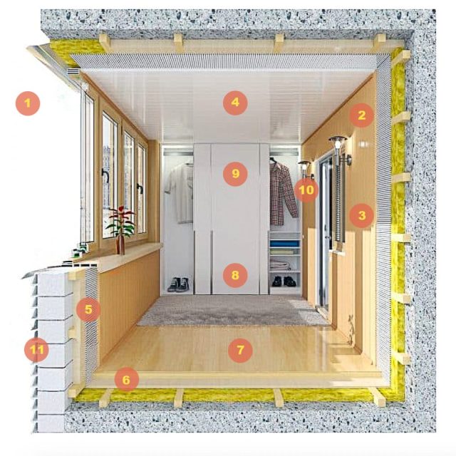 Рабочее пространство – закрытый балкон можно оборудовать рабочим столом, превращая его в мини-кабинет с видом на улицу.
