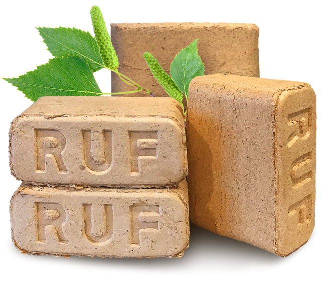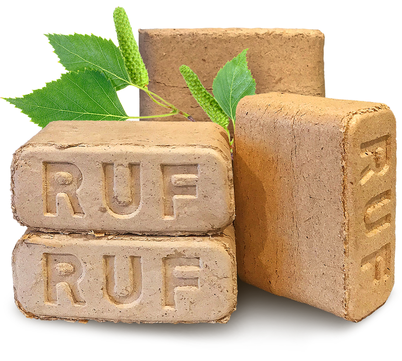 Брикеты RUF — это топливо, изготовленное из древесных опилок и стружки, которые прессуются под высоким давлением без добавления химических связующих веществ. Название происходит от немецкой технологии прессования RUF, разработанной для производства плотных топливных брикетов.