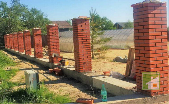 Забор с кирпичными столбами