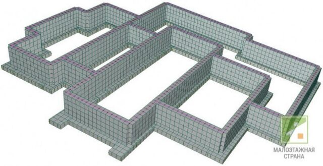 Пример расположения арматуры в ленте фундамента