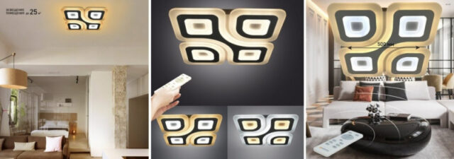 В наличии на складе появились светодиодные светильники Geometria Quadrate от MAYSUN с пультом ДУ. В люстре предусмотрено управление цветом свечения и яркостью. С помощью пульта или стационарного выключателя можно включить нейтральное освещение или режим ночника, организовать двойное свечение с одновременной работой холодных и тёплых диодов.