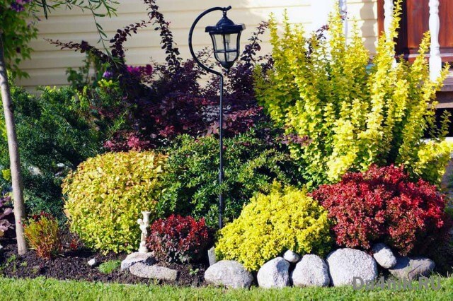 Декоративное растение представлено разнообразием видов и конфигураций. Наиболее эффектным является барбарис с красными листьями.