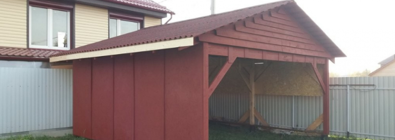 Осталось разобраться с декоративной отделкой, и навес на две машины готов. Задача не такая уж легкая — Nicht79 искал бюджетный вариант для покрытия ОСБ и ворсистой доски. И нашел!